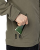 To keep essentials close at hand, the jacket includes several convenient zippered pockets. Two front pockets provide easy access and space for a hat, scarf, or to keep your hands warm. Inside, two elastic mesh pockets with wide openings and reinforced bases can hold items from radios to winter gloves. A chest pocket on the left side is a safe place for a train ticket or compass. Finally, there is an additional upper arm pocket with a zipper on the left sleeve.