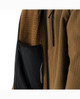 Fünf strategisch platzierte Taschen – davon drei außen und zwei innen – ermöglichen eine organisierte Mitnahme wichtiger Ausrüstung und EDC. Der 2-Wege-Frontreißverschluss mit Druckknopf am Saum erlaubt Temperaturregulierung und einfachen Zugriff auf darunterliegende Ausrüstung.